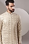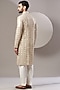 Featuring a white kurta in georgette base with zari and foil embroidery. Perfect attire for any festive occasion, exuding traditional charm and timeless elegance.