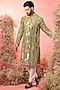 Featuring a yellow kurta in georgette base with abstract sequin embroidery. Style it up with pants and mojaris for a festive occasion, sangeet or haldi ceremony.