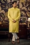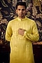 Featuring a yellow chikankari kurta in georgette base with thread work. Perfect attire for any festive occasion, exuding traditional charm and elegance.