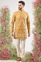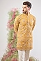 Featuring a yellow short kurta in georgette base, adorned with zari work, sequins, and floral embroidery. Accentuate it with straight pants or churidar, and a pair of mojaris for a wedding, sangeet or engagement ceremony.