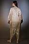 Featuring a sage green kurta in silk base with zari and sequins embroidery. It is paired with embroidered salwar pants and a banarasi dupatta. Accentuate with dangler earrings and heels for a festive occasion.