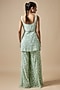 Featuring a green slit top in net base with cutdana hand embellishments. It is paired with sharara pants and a dupatta. Accentuate it with minimal jewellery and heels for a festive occasion or sangeet ceremony.