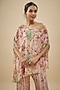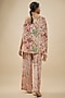 Featuring a pink top in crepe silk base with floral print. It is paired with pants. Accentuate with statement jewellery and heels for an evening look.