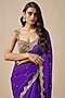 Featuring a purple saree in georgette base with cutdana embroidery. It is paired with a blouse having cutdana hand embellishment. Accentuate it with statement earrings and heels for sangeet or engagement ceremonies.