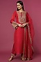 Featuring a red kurta in silk base with embroidery. It is paired with matching pants and an organza dupatta.