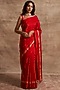 Featuring a red saree in pure banarasi silk with kadhua hand work and an attached unstitched blouse fabric. Accentuate it with statement jewellery and heels for a wedding, sangeet or engagement ceremony.