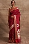 Featuring a red saree in pure silk with floral motifs, meenakari hand work and an attached unstitched blouse fabric. Accentuate it with statement jewellery and heels for a wedding, sangeet or engagement ceremony.