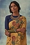 Featuring a yellow kalamkari saree in pure tussar silk base with hand painting. Accentuate it with statement jewellery and heels for a festive occasion or pooja ceremony.