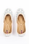 Featuring a pair of silver handcrafted juttis in leather base with pearls and coins. It has a leather underlining.