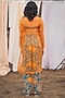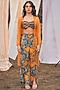 Featuring an azure and titian draped bralette in chiffon base with adjustable shoulder straps and print. It is paired with a matching silk organza overlay and viscose satin high-waisted pants having slits and side pockets.