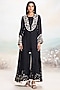 Featuring a black abaya jacket in linen base with gold-tone foil motif and floral embellishment. It is paired with an inner dress. Style it with jewellery, block heels and a clutch for a complete look, perfect for occasional wear, party wear and easy daily wear.