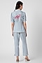 Featuring a blue top in linen base with puff sleeves, shell buttons, hand screen print and thread embroidery. It is paired with pants. Accentuate with statement jewellery and heels for casual wear.