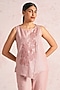 Featuring a blush pink sleeveless top in linen blend base with floral panel, round neckline and asymmetric hem. Accentuate it with pants, stud earrings and flats for casual outings, office wear or brunches.