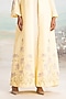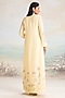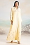 Featuring a buttercup yellow abaya jacket in linen base with a mandarin collar, full sleeves and hand screen print. It is paired with a dress. Accentuate it with statement earrings, block heels and a clutch for a refined look, perfect for festive evenings, formal dinners or elegant gatherings.