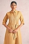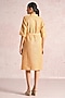 Featuring a cashew-colored midi dress in linen blend base with puff sleeves, foil print and waist tie-up detail. Accentuate it with hoop earrings and flats for casual outings, garden parties or brunches.