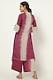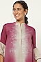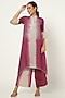 Featuring a dark pink and grey flared tunic in linen base with hand tie-dye. It is paired with matching culotte pants.