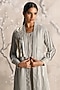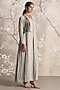 Featuring a fern green abaya jacket in linen base with floral motifs and linear hand screen prints, including cuff detailing. It is paired with a dress. Accentuate it with statement earrings, block heels and a clutch for a refined look, perfect for festive evenings, formal dinners or elegant gatherings.