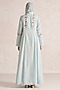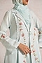 Ice Blue Linen Blend Floral Printed & Thread Embroidered Abaya Jacket Dress