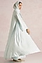 Ice Blue Linen Blend Printed & Sequins Embroidered Asymmetrical Abaya Jacket Dress