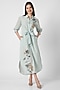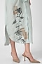 Featuring an ice blue tie-up dress in linen base with hand screen print, zardosi and floral thread embroidery. It is paired with pants. Accentuate with statement jewellery and heels for a complete look.