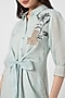 Ice Blue Linen Hand Screen Printed & Floral Thread Embroidered Tie-Up Dress