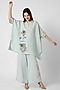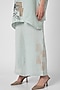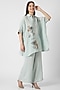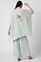 Featuring an ice blue square top in linen base with a collar neckline, three-fourth sleeves, printed cuffs, zardosi and floral thread embroidery. It is paired with pants. Accentuate it with minimal jewellery and heels for a complete look.