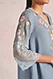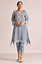 Featuring an ink blue tunic in linen blend base with a v-neckline and raglan sleeves. It is paired with straight pants. Accentuate it with dangler earrings and flats for casual outings or family gatherings.
