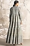 Featuring a jade abaya jacket in linen base with hand screen print and embroidery, adorned with a ruffled high neck, puff sleeves, lace overlay and a handmade tassel closure. It is paired with a dress. Style it with jewellery, block heels and a clutch for a complete look, perfect for occasional wear, party wear and easy daily wear.