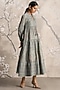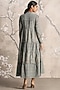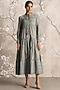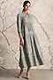 Featuring a jade panelled dress in linen base with hand screen print and embroidery, adorned with ruffled neck, raglan sleeves and lace overlay. Style it with jewellery, block heels and a sleek hairdo for a complete look. Perfect for everyday, office or casual wear.