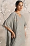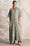 Featuring a jade kaftan in linen base with hand screen print and embroidery, adorned with lace overlay. Style it with jewellery, block heels and a sleek hairdo for a complete look. Perfect for everyday, office or casual wear.