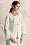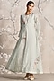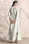 Featuring a light green abaya jacket in linen base with open collar and handmade tassel closure, adorned with muted gold-tone foil, floral embellishments and silk thread embroidery. It is paired with an inner dress. Style it with jewellery, block heels and a clutch for a complete look, perfect for occasional wear, party wear and easy daily wear.