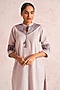 Featuring a mauve straight kurta in linen blend base with a round neckline and tie-up tassel detail, including embroidery. It is paired with straight pants. Accentuate it with dangler earrings and flats for casual outings or family gatherings.