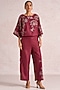Featuring a merlot top in linen blend base with floral print. It is paired with pants. Accentuate it with stud earrings and flats for casual outings, office wear or brunches.