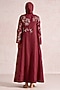 Merlot Linen Blend Floral Printed & Embroidered Abaya Jacket With Dress