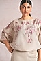 Natural Beige Linen Blend Floral Printed Tie-Up Top