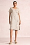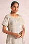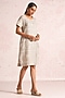 Natural Beige Linen Blend Printed & Embroidered Dress
