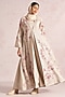 Featuring a natural beige asymmetrical abaya jacket in linen blend base with wide sleeves, screen print, beads and sequins embroidery. It is paired with an inner dress having print and embellishment. Accentuate it with statement earrings, block heels and a clutch for a refined look, perfect for festive evenings, formal dinners or elegant gatherings.