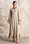 Featuring a natural-colored dress in linen blend and silk organza base with handcrafted floral tassels, round neck, flared sleeves, hand screen print and hand embroidery. Accentuate it with statement earrings, block heels and a clutch for a refined look, perfect for garden parties, daytime events or brunch dates.