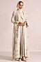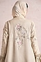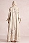 Natural-Colored Linen Blend Silk & Organza Embroidered Abaya Jacket Dress