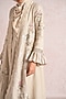 Featuring a natural-colored abaya jacket in linen blend silk and organza base with smocked sleeves, lace shawl collar and hand embroidery. It is paired with a dress. Style it with jewellery, block heels and a clutch for a complete look, perfect for occasional wear, party wear and easy daily wear.