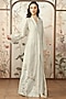 Featuring a natural-colored abaya jacket in linen base with an open collar, tonal print and floral thread embossed embroidery. It is paired with a dress. Style it with jewellery, block heels and a clutch for a complete look, perfect for occasional wear, party wear and easy daily wear.