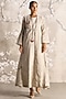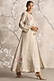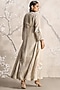 Featuring a natural colored abaya jacket in linen base with open collar and handmade tassel closure, adorned with muted gold-tone foil, floral embellishments and silk thread embroidery. It is paired with an inner dress. Style it with jewellery, block heels and a clutch for a complete look, perfect for occasional wear, party wear and easy daily wear.