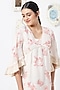 Featuring an off-white and dusty rose dress in linen base with a hand print, lace, and motifs work.
