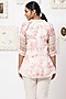 Featuring an off-white and dusty rose top in linen base with a hand print, lace, and rose motifs work. It is paired with matching pants.