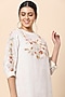 Featuring an off-white mini dress in linen base with floral and lace embroidery.