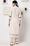 Featuring an off-white tunic in linen and silk organza base with floral pearl applique embroidery. It is paired with matching pants.