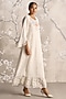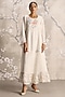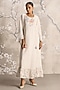 Featuring an off-white dress in linen blend and silk organza base with handcrafted floral tassels, round neck, flared sleeves, hand screen print and hand embroidery. Accentuate it with statement earrings, block heels and a clutch for a refined look, perfect for garden parties, daytime events or brunch dates.