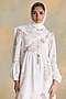 Featuring an off-white dress in linen blend base with motifs print, gathered waist, lace inserts, dori tie-up and tassels detailing. Accentuate it with statement earrings, block heels and a clutch for a refined look, perfect for garden parties, daytime events or brunch dates.