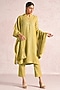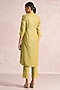 Featuring a pear green kurta in linen blend base with a structured mandarin collar and organza cuff detail, including pearl and sequins embroidery. It is paired with straight pants and a dupatta. Accentuate it with dangler earrings and flats for casual outings or family gatherings.