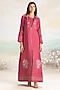 Pomegranate Colored Linen Hand Screen Printed & Embroidered Abaya Jacket Dress